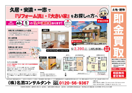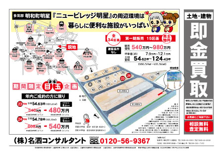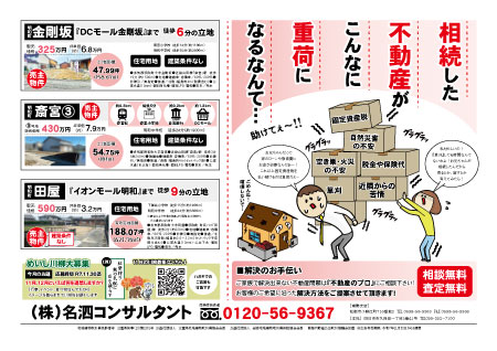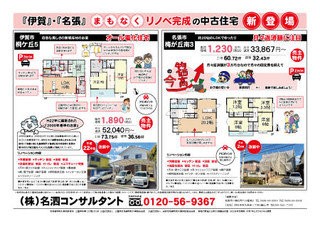 名泗コンサルタントの最新チラシをPDF 形式でご覧いただけます。 チラシ表面 チラシ裏面 2025.11.29 【伊賀、名張方面折込】オススメ物件情報 表面久居・安濃・一志で『リフォーム済』・『大きいお家』をお探しの方へ! 裏面伊賀市桐ケ丘五丁目、名張市梅が丘南三番町の新登場物件です! チラシ表面 チラシ裏面 2025.11.29 【津方面折込】オススメ物件情報 表面久居・安濃・一志で『リフォーム済』・『大きいお家』をお探しの方へ! 裏面津市一志町田尻、津市藤方のオススメ物件情報です! チラシ表面 チラシ裏面 2025.11.29 名泗コンサルタント★お勧め物件情報★ 表面お勧め物件情報 戸建・マンション 裏面お勧め物件情報 戸建・土地・その他 チラシ表面 チラシ裏面 2025.11.27 『空き家・空き土地』 募集中! 不動産について、元気なうちに考える! 表面意外と困る。残された不動産の行方 子供に残さず、自分の代で完結 裏面ラッピング電車でおなじみの「名泗コンサルタント」です チラシ表面 チラシ裏面 2025.11.22 【津方面折込】オススメ物件情報 表面津市一志町田尻 新価格になりました! 裏面ニュービレッジ明星 期間限定企画のご紹介です! チラシ表面 チラシ裏面 2025.11.22 【明和町方面折込】明和町 オススメ土地情報 表面明和町金剛坂・明和町斎宮・明和町田屋のオススメ売土地情報です 裏面ニュービレッジ明星 期間限定企画のご紹介です! チラシ表面 チラシ裏面 2024.11.30 買取新聞 11月23日号、11月30日号 表面買取?仲介? 不動産売却 後悔しない選択を。 裏面広告掲載期間終了しました チラシ表面 チラシ裏面 2024.9.28 買取新聞 9月28日号 表面親の遺産。進まない遺産分割。家族間でトラブル発生!? 裏面広告掲載期間終了しました チラシ表面 チラシ裏面 2024.7.20 買取新聞 7月20日号 表面もめるのは嫌!相続登記 再確認でトラブル回避! 裏面広告掲載期間終了しました チラシ表面 チラシ裏面 2024.4.20 買取新聞 4月20日号 表面空き家放置が機会損失に繋がるワケとは? 裏面広告掲載期間終了しました 123次の10件 >