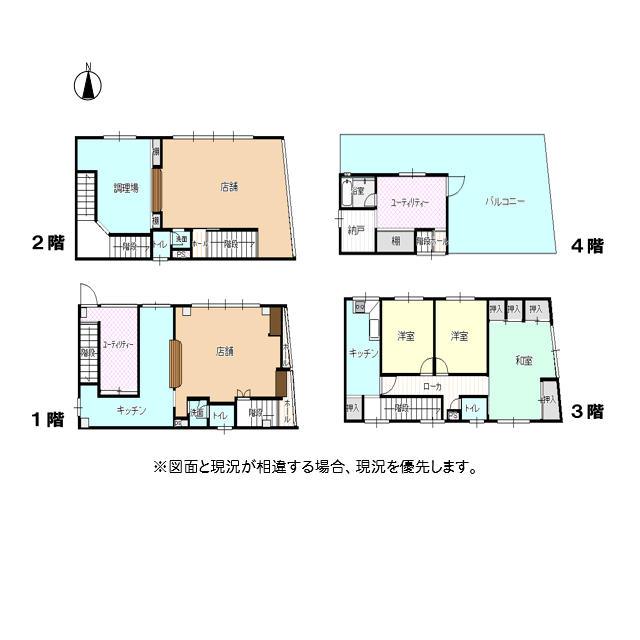 備考 | ※1~2階:店舗、3~4階:住居 ※公共下水区域。受益者負担金賦課済。桝は未設置ですが市の負担にて設置 ●学校区:厚生小学校・厚生中学校 ●物件お問い合わせ 担当者:きのした |