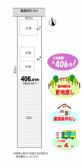 | 現況 | 上物あり | 引渡条件 | 相談(建物は売主にて解体します) |