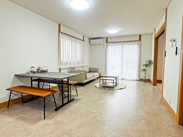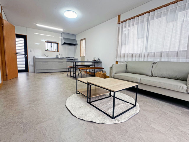 | リフオーム内容 | *外壁・屋根塗装 *キッチン 新品 *浴室新品 *洗面化粧台 新品 *トイレ 新品 *給湯器交換 *天井・壁クロス貼替 *床 クッションフロア・フロアタイル張替 *網戸張替 *畳表替 *照明器具交換 *ハウスクリーニング <リフォーム完成時期:令和8年2月頃> |