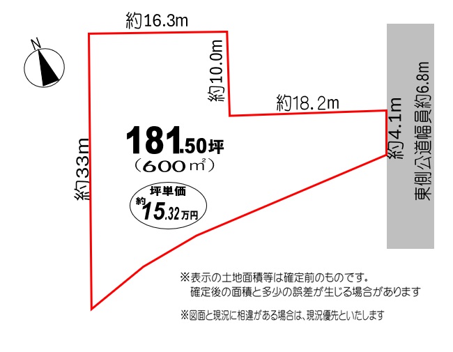 | 接道状況 | 東側市道幅員約6.8mに約4.1m接道 |